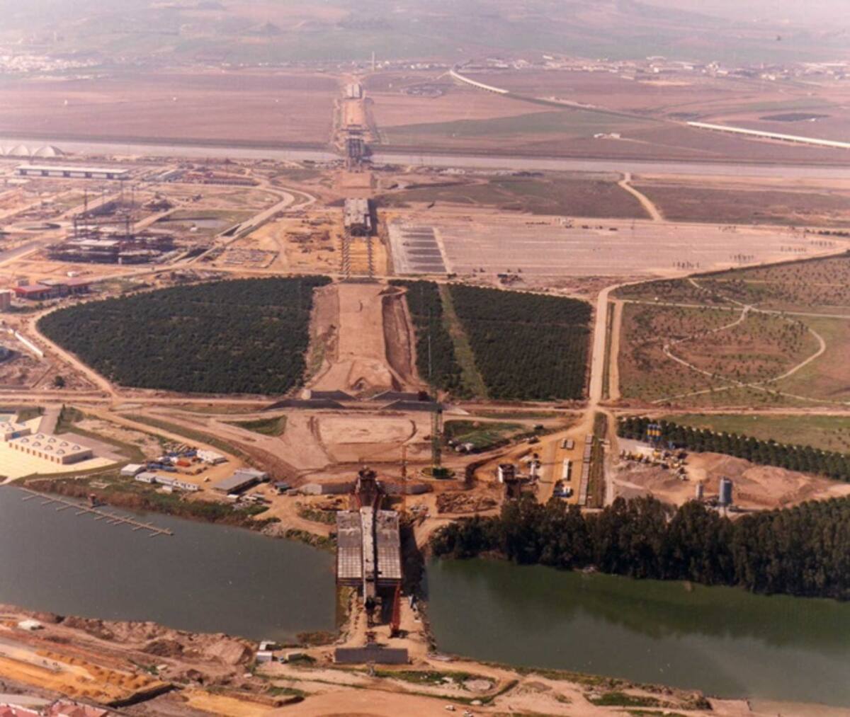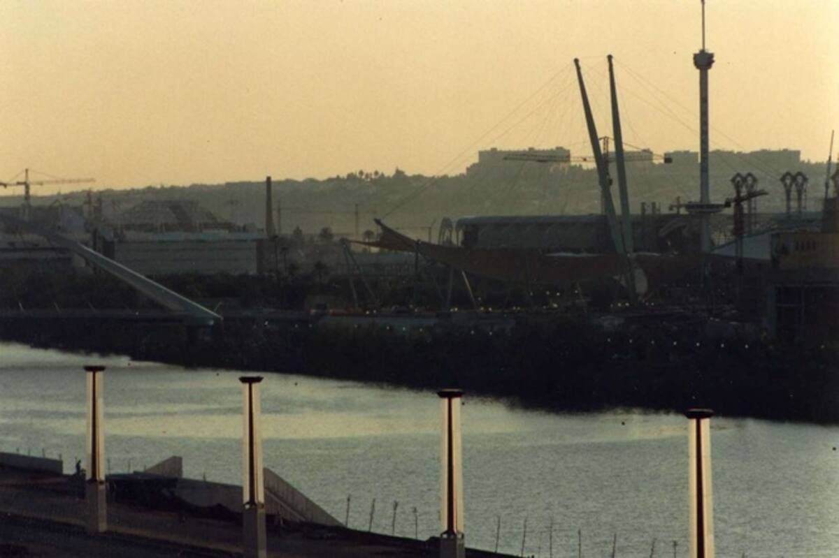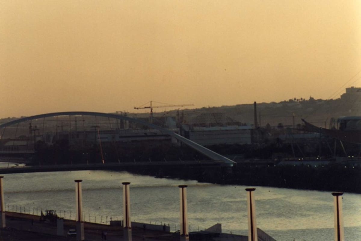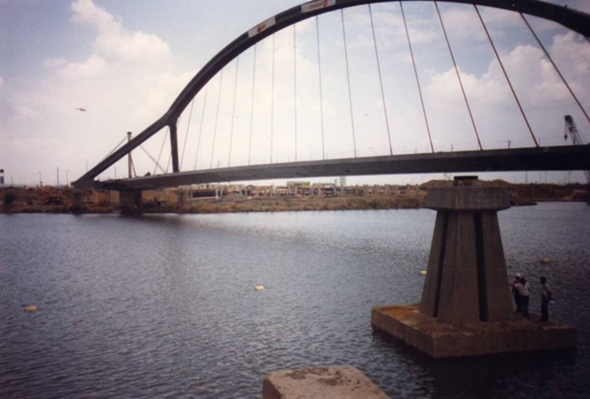 La pasarela de La Cartuja cuando aún quedaba mucho por hacer.