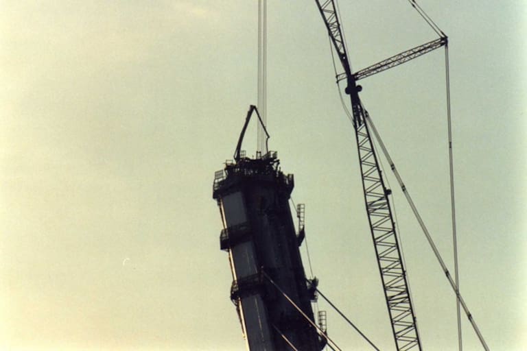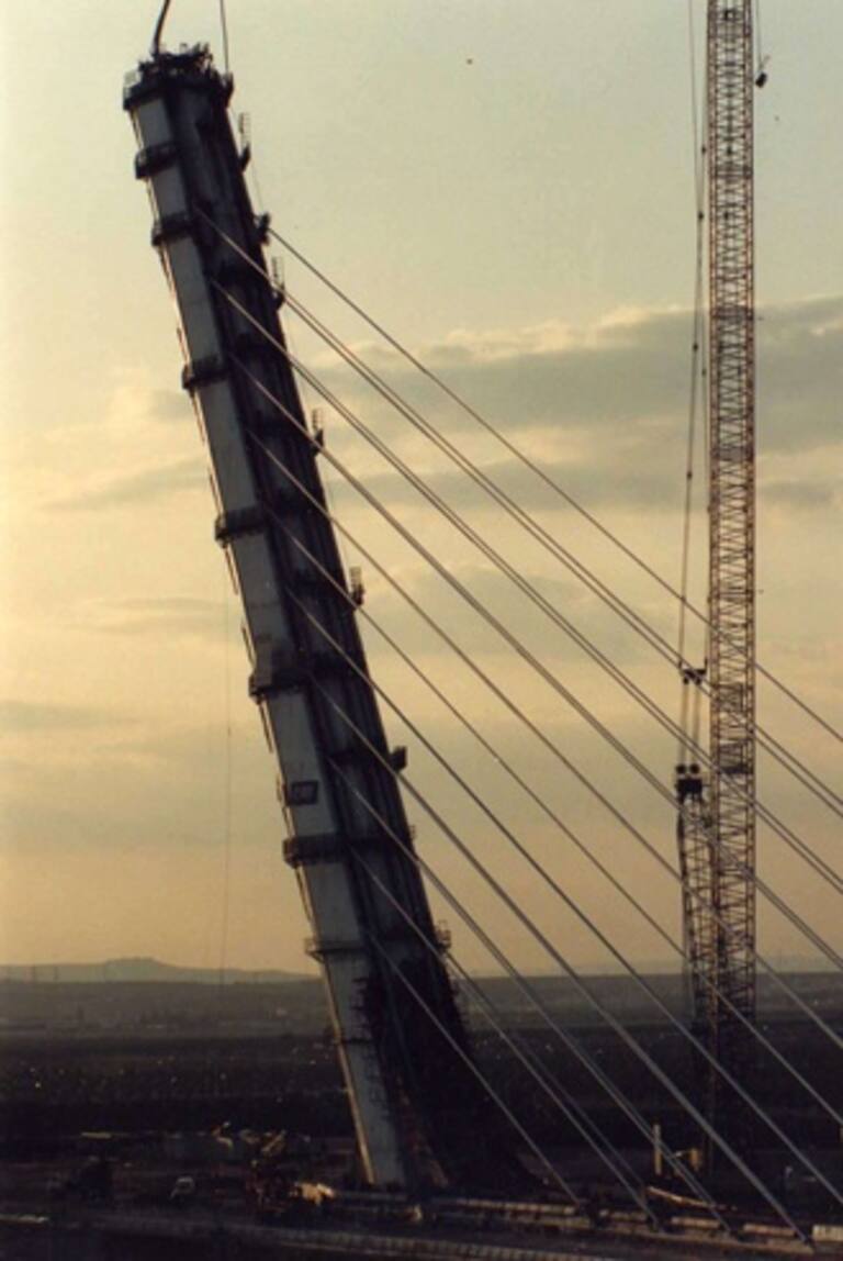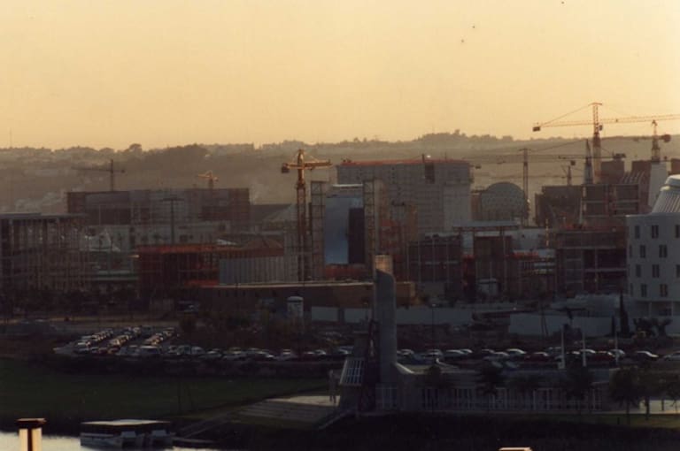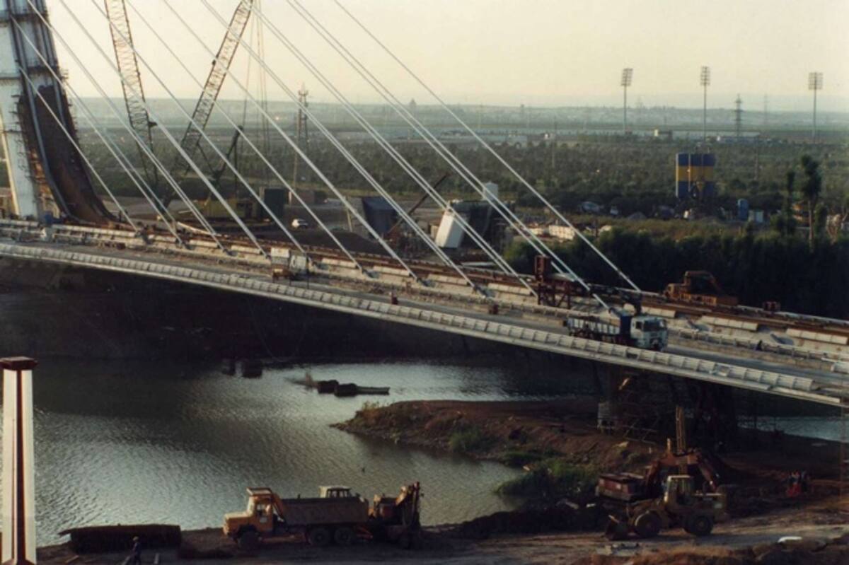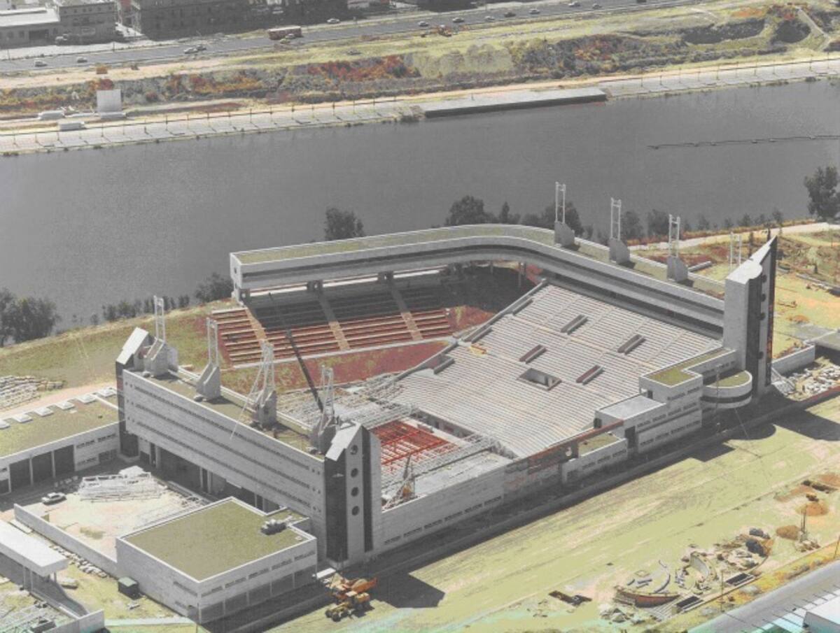 La pasarela de La Cartuja cuando aún quedaba mucho por hacer.