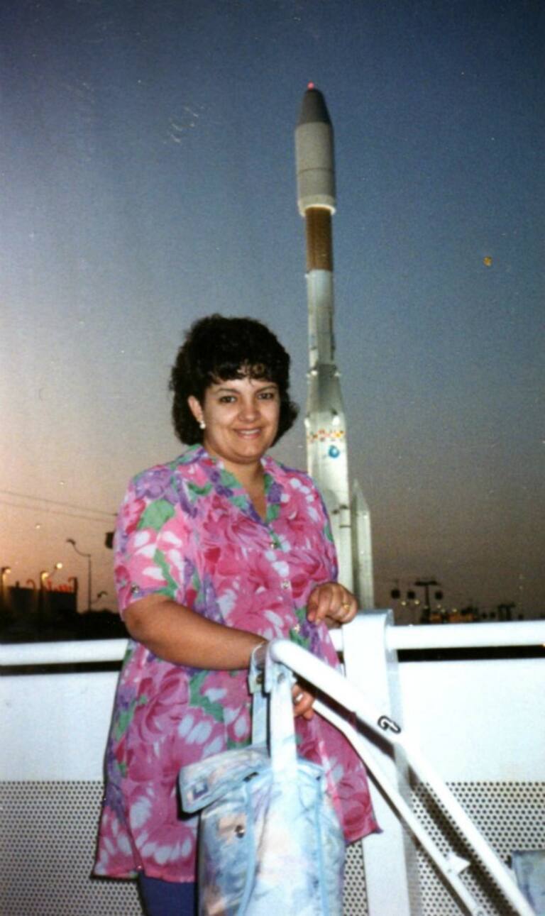 La esposa de Antonio Vázquez, en un atardecer en la Expo.