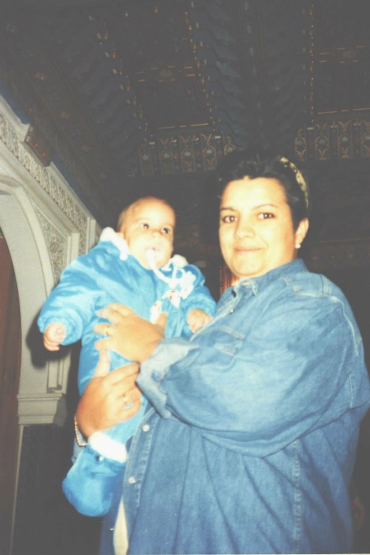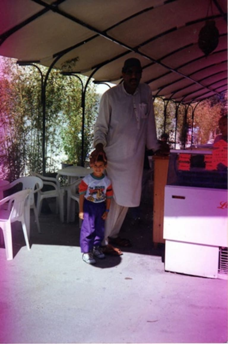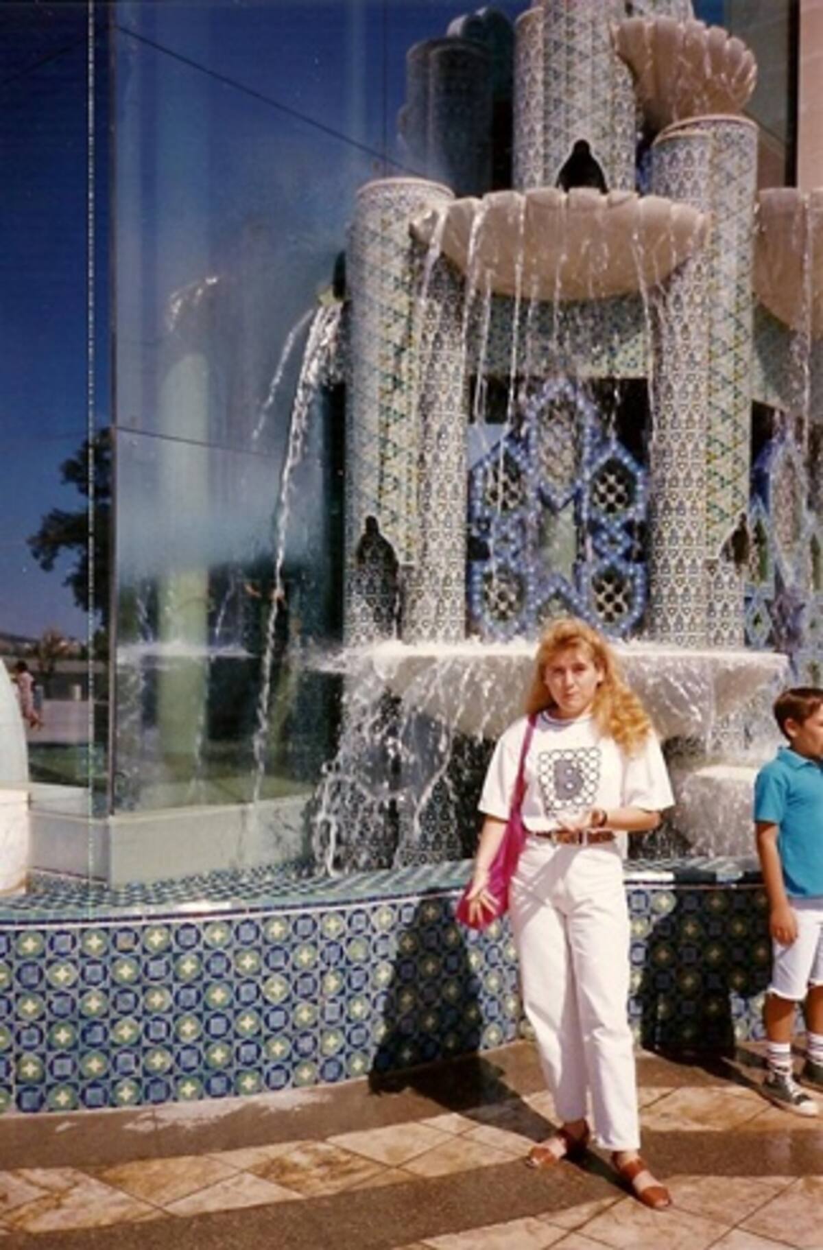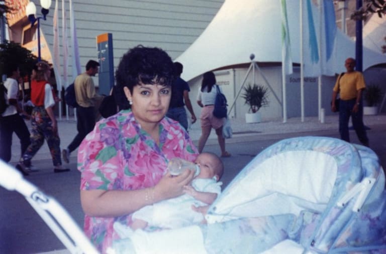 Madre e hijo, en el por entonces pabellón de Marruecos el día de la clausura de la Expo.