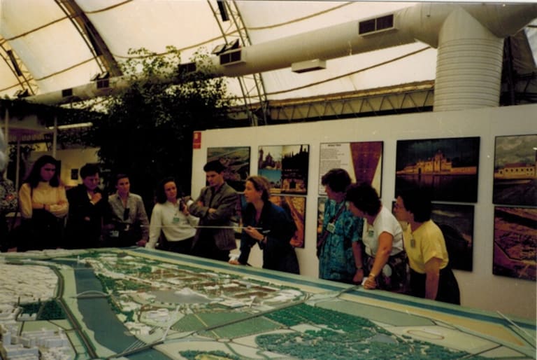 Miguel Ángel Leal visitando las maquetas de lo que en un futuro iba a ser la Expo 92.