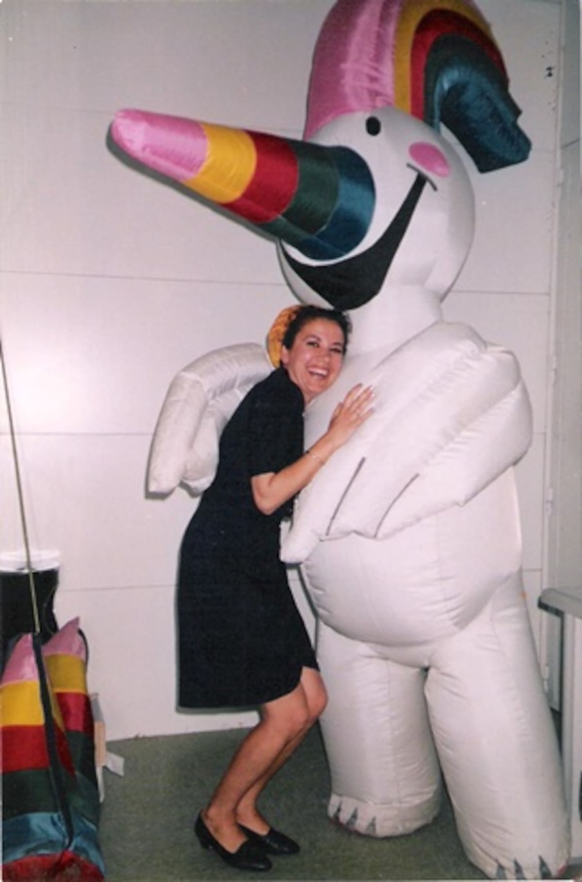 Carmen Asunción Pérez Rivera junto a Curro, en el PIA4 (punto de información y atención), una calurosa tarde de mayo de 1992, cuando la mascota de la Expo se disponía a comenzar su diaria cabalgata.