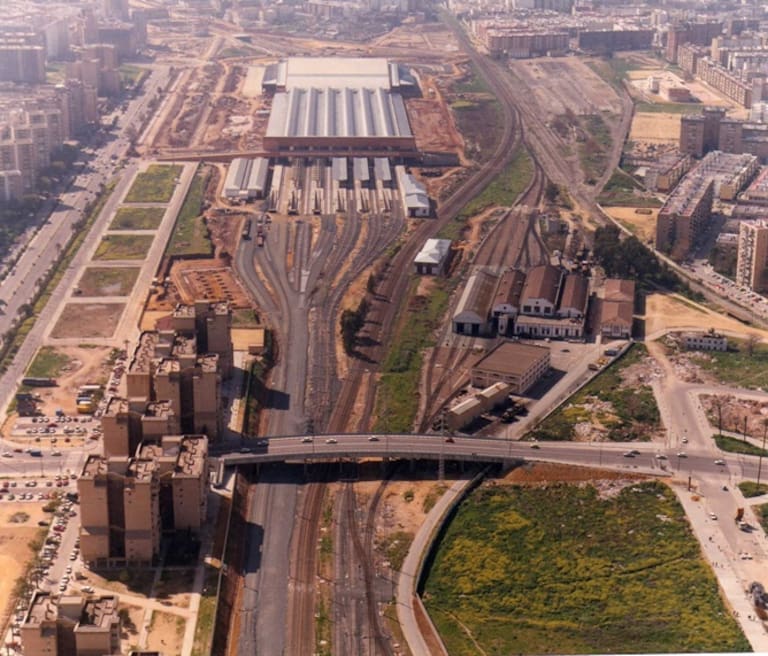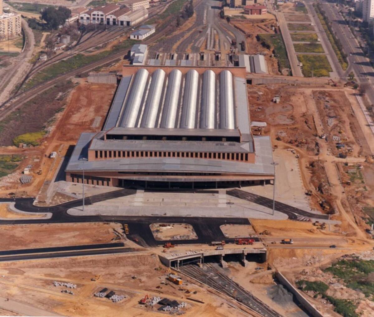 Vista aérea de la estación de Santa Justa en obras.