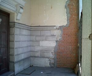 La primera parada del paseo ha sido la antigüa Junta Municipal de Universidad, un edificio que desde hace 6 años no tiene un uso completo y ahora está completamente vacío, exceptuándo la base del SAMUR. Las hojas secas de la entrada, sus paredes desconchadas y el techo sin parte de las molduras muestra el abandono al que ha sido sometido en los últimos años. Estaba pensado que entrara el Instituto portugués Canoes, luego el Ayuntamiento propueso una escuela de música y danza y no hay nada", explica el portavoz. "Esto da una idea de las dejaciones del Ayuntamiento en las dotaciones, luego se quejarán de que hay ocupaciones", añade.