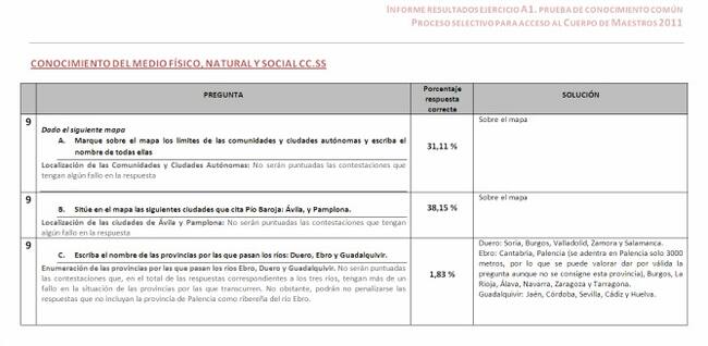 Informe de los resultados de la 'Prueba Común' de acceso a maestros en 2011(CADENA SER)