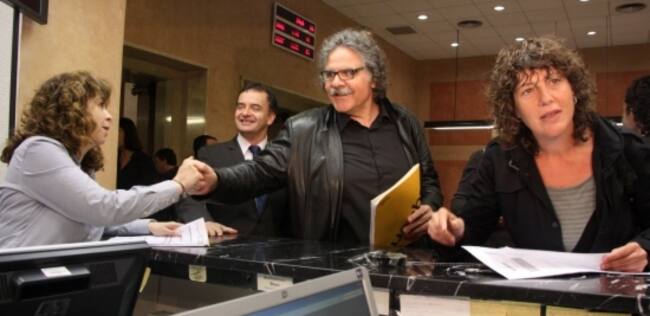 Els diputats al Congrés de la coalició ERC-Rcat-Catalunya Sí, Alfred Bosch, Joan Tardà i Teresa Jordà fan el pagament de l'IRPF a l'Agència Tributària de Catalunya(ACN)