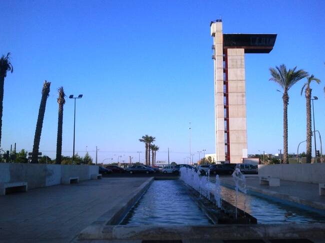 Imagen de una de las rotondas construidas con el nuevo acceso y la torre mirador al fondo(JULIÁN GIMÉNEZ)