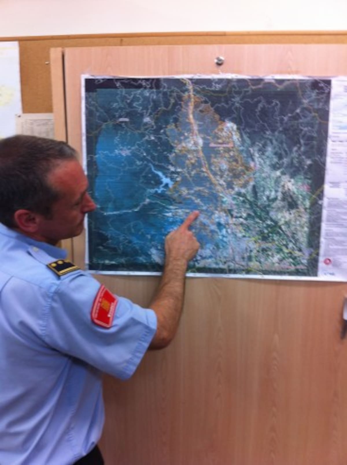 Enric Cano, cap de bombers mirant el perímetre de l'incendi en un mapa, un any després