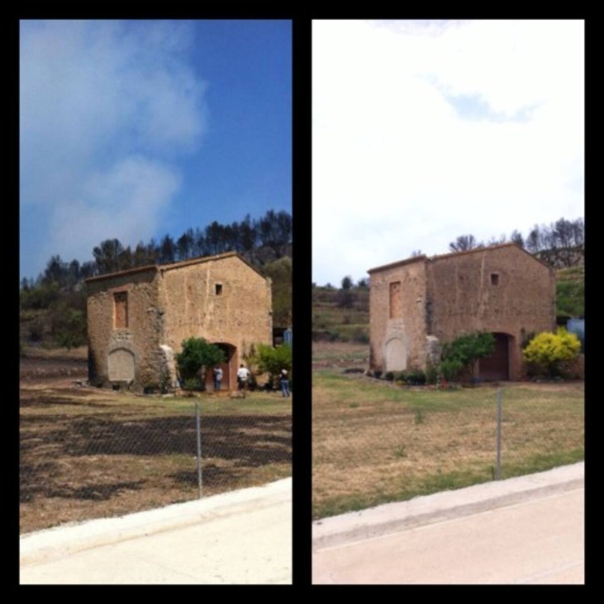 Casa a Biure. Les flames van llepar l'estructura. Abans i després