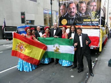 El veterano grupo de sevillanas "Cantores de Híspalis" han participado este pasado domingo, 13 de octubre, en el Desfile de la Hispanidad que atravesó Manhattan por la Quinta Avenida, en una carroza en la que han interpretado las sevillanas de su último disco, "La Gran Manzana".