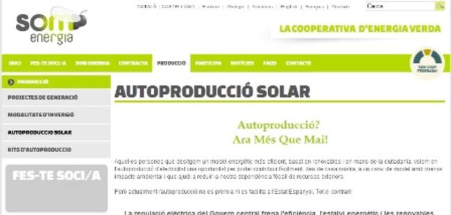 La cooperativa d'energia verda Som Energia ofereix kits d'autoproducció solar i assessorament legal als socis que vulguin fer insubmissió a la reforma energètica del govern. El nou text planteja tantes traves a l'autoproducció que, a la pràctica, n'elimina tota possibilitat.