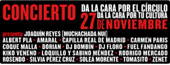Los músicos se unen para ayudar a salvar el Círculo de Bellas Artes, que actualmente atraviesa turbulencias económicas. Con el lema 'Da la cara por el Círculo, da la cara por tu cultura', el concierto pretende ensalzar una cultura "independiente, crítica y actual". Debido a la enorme demanda, la organización ha decidido ampliar el fin de fiesta con una sesión electrónica que contará con lo DJ Bombín o DJ Floro.