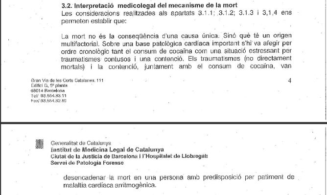 Els metges legals conclouen que en aquest cas concret "la contenció ha estat també un element desencadenant del procés de mort com a conseqüència del factor estressant".