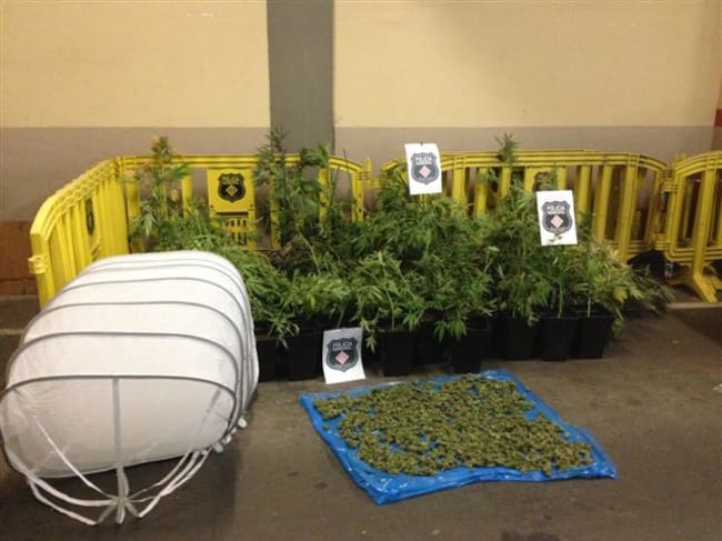 Els agents es van posar en contacte amb el propietari del local i, amb ell, van entrar a dins del garatge, on hi van trobar 64 plantes de marihuana en testos i 116 testos amb terra però sense plantes. També hi havia bosses de plàstic amb més d'un quilo i mig de cabdells de marihuana a dins. El local estava condicionat per al cultiu d'aquesta planta, amb llum artificial i un sistema de climatització amb ventiladors.