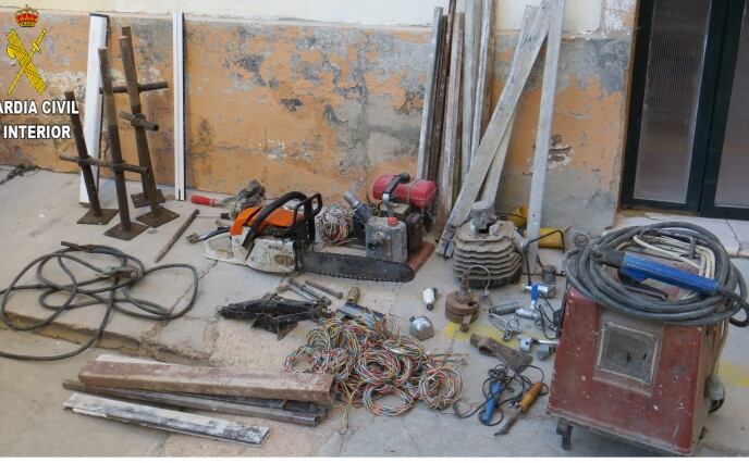 Dentro de este operativo, la Guardia Civil se ha incautado de diverso material procedente de la comisión de los tres hechos esclarecidos hasta el momento entre los que cabe destacar 100 kilos de cobre, un grupo electrógeno, una motosierra y dos baterías, que han sido devueltos a sus legítimos dueños.