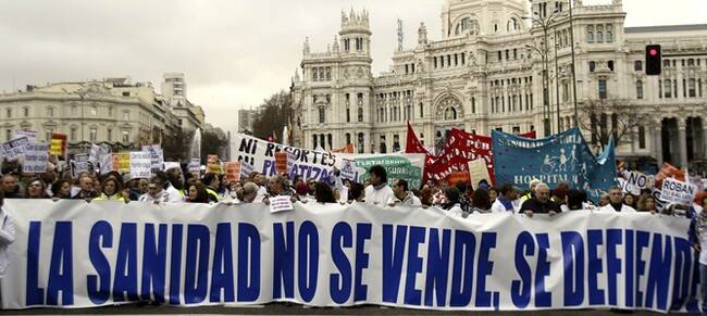 Protestas contra la privatización sanitaria en Madrid.