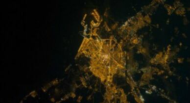 En la imagen se pueden ver las luces de un barco que está llegado o saliendo de puerto. La zona oscura de la esquina superior izquierda es el Mar Mediterráneo, donde no hay luces que lo iluminen de noche. Las otras zonas oscuras de la imagen se corresponden con parques, zonas verdes y descampados, donde los humanos todavía no han instalado luces artificiales.
