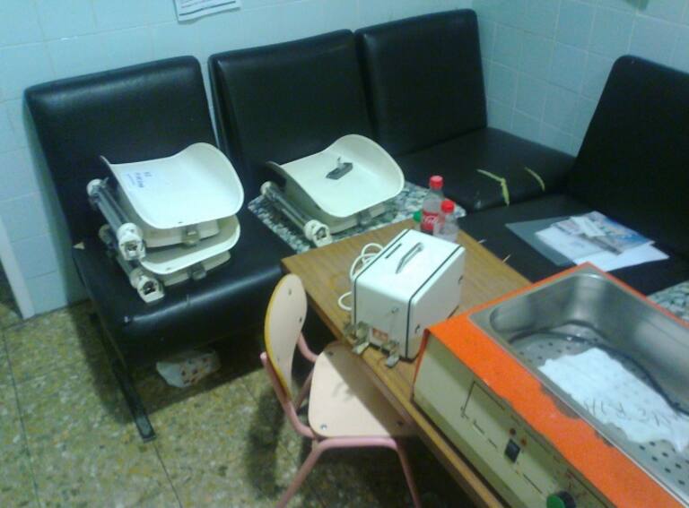 Aparatos médicos abandonados en el antiguo Hospital La Fe