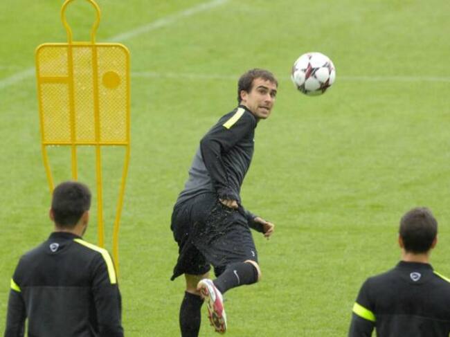 Mikel González pelea por un balón durante una sesión en Zubieta(Agencias)