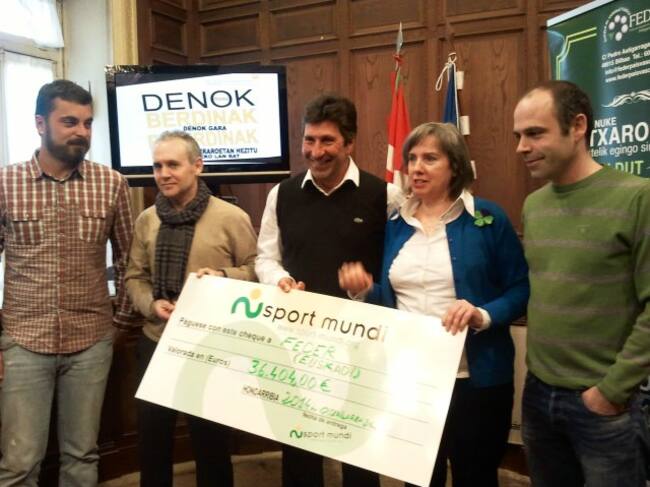 Txema Olazabal entrega el cheque de Sport Mundi a FEDER