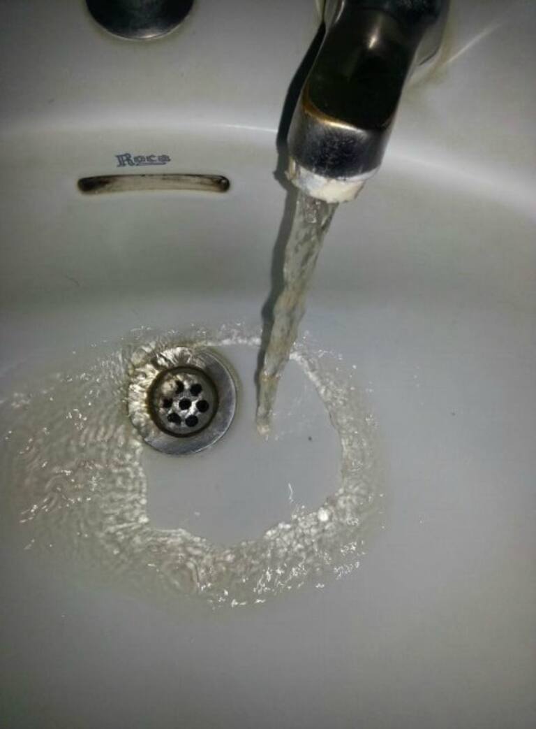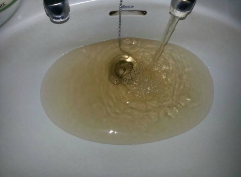 Agua turbia saliendo de un grifo