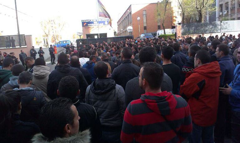 Agentes de la Unidad de Intervención Policial (UIP) se han concentrado esta tarde en el complejo de Moratalaz para mostrar su "indignación" por los "riesgos" que asumieron anoche en los disturbios posteriores a la Marcha de la Dignidad y pedir el cese de los responsables del dispositivo.