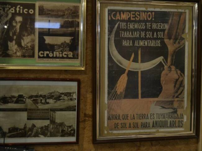 En la última sala del museo se encuentra la sala de las banderas. Pero no son banderas lo que más llamaron la atención de unos visitantes que Goyo tuvo hace tiempo. Les llamó la atención la portada de un periódico, Crónica, en el que se ve a una mujer armada 'la miliciana Josefina Vara del batallón Largo Caballero', explica el pie de foto. "Hace ya un año estaba aquí una señora mirando la fotografía. Llamó muy nerviosa a su marido, ven, corre, corre, el marido decía ¿qué pasa? Mira tu madre. El hombre lloró".