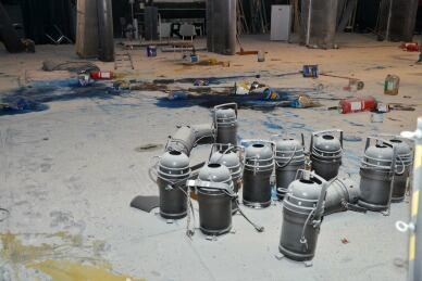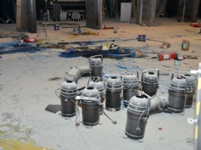 Botes de pintura vertidos en el suelo, extintores vaciados, pintadas en las paredes, polvo, suciedad y abandono en el patio de butacas. Este es el único espectáculo que se puede ver hoy en el Teatro de Madrid.