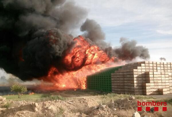 Danys que seran quantiosos, i que avaluen des d'avui mateix els tècnics de l'empresa d'assegurances. I que poden pujar per sobre del milió d'euros, en el ben entès que cada palet nou costa 50 euros. A més a més, també caldrà arranjar el terra de l'exterior on hi havia els palets cremats, perquè les altes temperatures l'ha fet malbé.