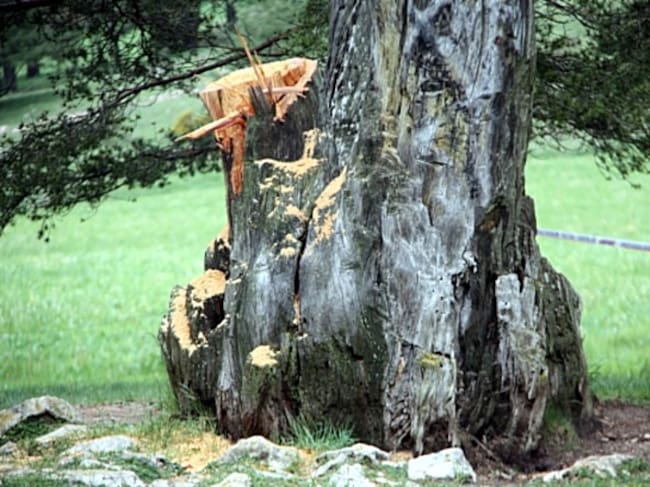 Imatge de la mutilació que ha patit el Pi de les Tres Branques