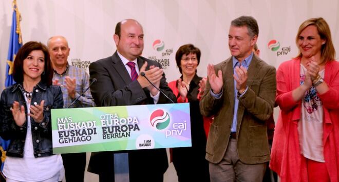 Las elecciones europeas vuelven a confirmar al PNV como principal fuerza política en suelo Bizkaino y también en su capital Bilbao. El partido jeltzale recabó el 31,72% de los votos, con 131.915 papeletas. Lectura positiva en Sabin Etxea que reafirma su liderazgo pero, al mismo tiempo, ve cómo se le va acercando EH Bildu, que se asienta como segunda fuerza. La coalición abertzale se ha quedado al borde del 20%, con 82.563 sufragios. El voto nacionalista, en suma, aglutina el 50% del espectro. La caída en picado de socialistas y populares tiene su reflejo también en Bizkaia. En la comparativa con los resultados de 2009 los socialistas se han dejado por el camino 14 puntos, son 57.000 votos menos. El PP ha reducido también el respaldo ciudadano, con 15.000 votos menos. La gran sorpresa fue Podemos que ha irrumpido como quinta fuerza política en Bizkaia, con casi 28.000 votos, por encima de IU-EKI y UPyD.