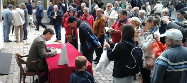 Christian Gálvez firmando ejemplares de su libro 'Matar a Leonardo Da Vinci'.(MEDIOSCOM)