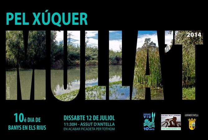 La Plataforma Xúquer Viu ha realizado hoy un acto reivindicativo-festivo que ya ha cumplido 10 ediciones... Mulla't pel xúquer, una reivindicación de la calidad del agua de los ríos a través de la recuperación de las zonas de baños.