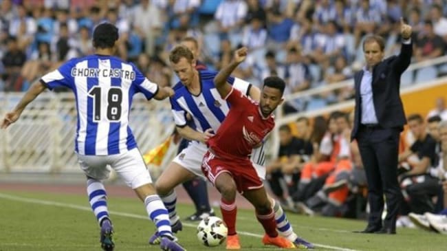 David Zurutuza disputa un balón en el partido de ida jugado en Anoeta.(REAL SOCIEDAD.COM)