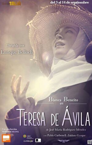 De la productora valenciana Marben Media, la pieza, que se representará del 3 al 14 de septiembre, está dirigida por Enrique Belloch y protagonizada por la actriz Blanca Beneito. Según la actriz se trata de una oba emotiva, que refleja una historia de amor con Dios" y que, , ofrece una visión diferente de Santa Teresa, más fuerte y con más carácter. A pesar de que se represente en un lenguaje clásico, Beneito, que ha pasado hoy por los micrófonos de Hoy por Hoy Locos por Valencia, asegura que está adaptado para que lo entiendan todos los públicos y que esta obra puede tener un importante atractivo para los jóvenes.