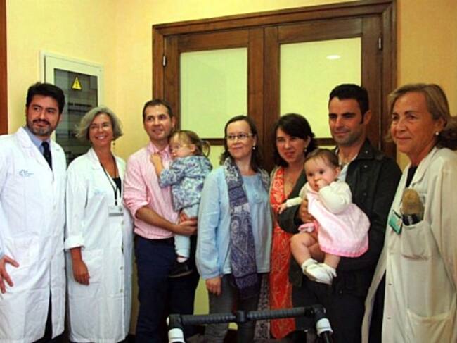 El equipo de médicos de la Vall d'Hebron que ha desarrollado está nueva técnica con dos de las familias que han participado(ACN)