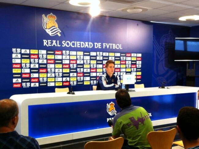 Jon Gaztañaga atiende a los medios de comunicación en la sala de prensa en Zubieta.(R.R.M)