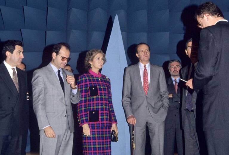 Los reyes de España junto al presidente de la Junta de Andalucía, Manuel Chaves, durante la inauguración del Parque Tecnológico de Andalucía el 9 de diciembre de 1992.