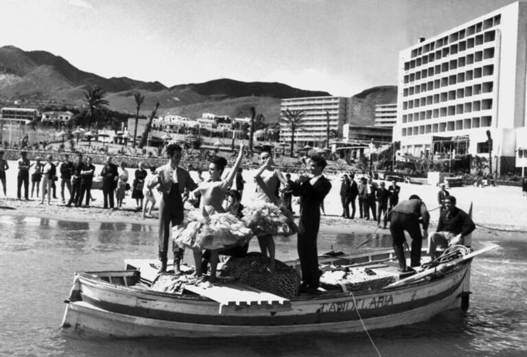 El turismo agudiza el ingenio para ofrecer nuevas sensaciones al turista que puede así gozar no solo del sol sino también del temperamento imaginativo español. He aquí una muestra: El "tablao" flamenco organizado por Robert Alety, con la colaboración del grupo Folklórico "Los Lucena" en 1964.(pie original)