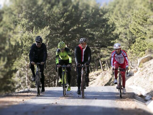 Purito, Camp, Escartín i Guillén provant sobre el terreny el nou asfaltat del Coll de la Gallina per a La Vuelta / SFGA