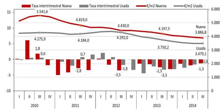 El precio medio por metro cuadrado de las viviendas nuevas y usadas en Bilbao ha bajado más de un 7 % en el tercer trimestre de 2014 en comparación con el mismo período del pasado año, según los datos publicados por el Ayuntamiento basados en estadísticas del Gobierno Vasco.