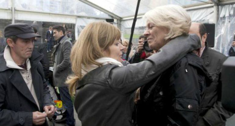 El documental `Reencuentro´ en ETB vuelve a reunir en la Plaza de la Convivencia de Bilbao a Rosa Rodero, viuda de Joseba Goikoetxea, y a Carmen Guisasola, presa de la via Nanclares en libertad, tras su abrazo hace un año en el homenaje al sargento mayor de la Ertzaintza