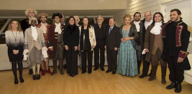 Plácido Domingo, Helga Schmidt ademas d ela Consellera Catalá y el presidente de les Corts Alejandro Font de Mora acompañan al reparto de la ópera que inicia la temporada en el Palu de les Arts de Valencia / Generalitat Valenciana
