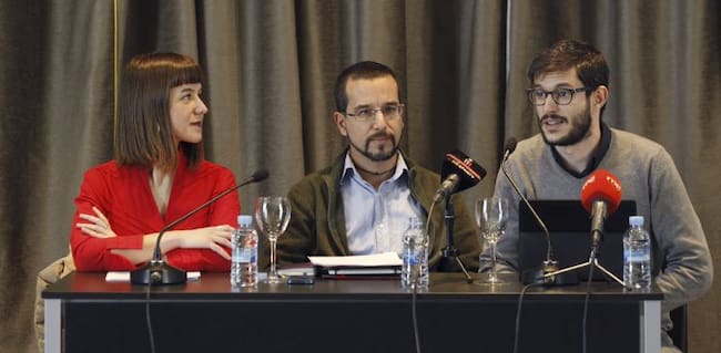 Lander Martínez, Hannot Sansinenea y Fernando Iglesias, líderes de Podemos en Euskadi