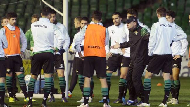 GRA170. SEVILLA, 29/12/2014.- El entrenador del Betis Pepe Mel (3d) da instrucciones a sus jugadores durante el entrenamiento llevado a cabo hoy en Sevilla. EFE/Raúl Caro. / Raúl Caro. (EFE)