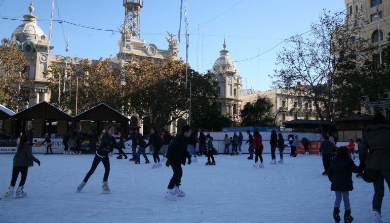 La pista de hielo que los comerciantes del centro histórico han instalado estas Navidades en la explanada central de la plaza del Ayuntamiento apura sus últimos días. Estará en funcionamiento hasta el domingo y con horario ampliado hasta medianoche.