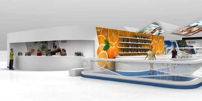 El stand, situado en la entrada del Pabellón 7,  pretende unificar la imagen de la Comunitat, con un diseño de stand global, respetando las singularidades de las cinco marcas   y que evoca las formas y movimientos de las olas que bañan las costas valencianas.