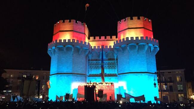 “Valencians i Valencianes, ja estem en Falles”. Con esta tradicional frase, la Fallera Mayor de Valencia, Estefanía Lopez, ha prendido la mecha de las Fallas 2015. La ‘crida’, celebrada como todos los años en las torres de Serranos, ha estado precedida de una proyección de imágenes sobre las paredes de las torres, un espectáculo conocido como “mapping”.