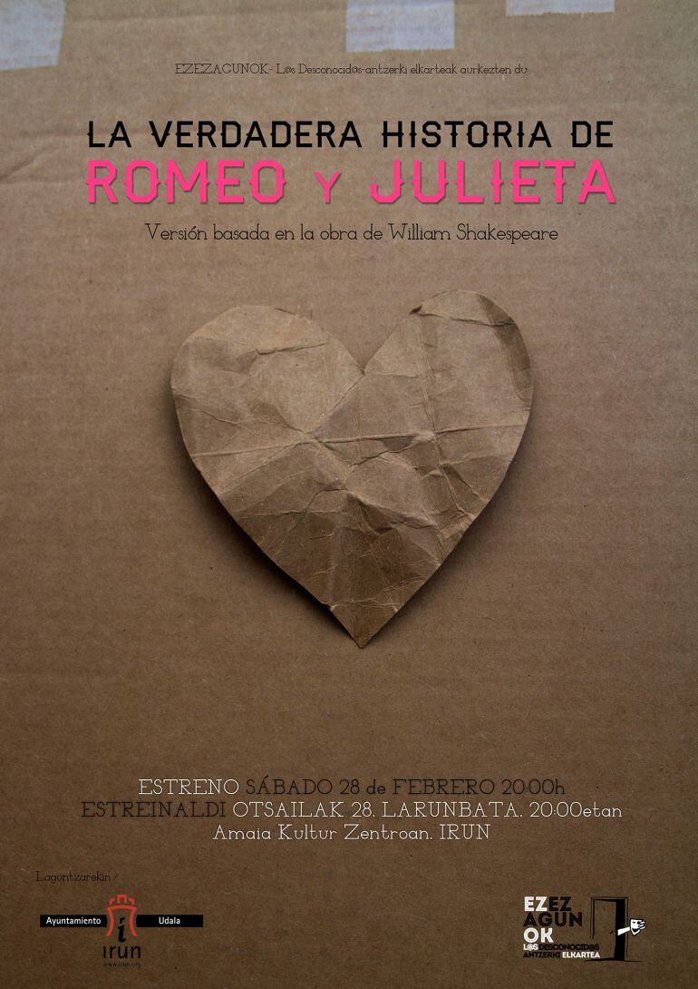 El grupo de teatro amateur “Ezezagunok” pondrá en escena este próximo sábado, a partir de las 20.00 horas, en el Centro Cultural Amaia, la obra de teatro en castellano “La verdadera historia de Romeo y Julieta”, con entrada libre.