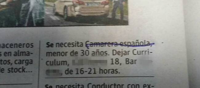 Anuncio por palabras publicado en un medio local que excluye a extranjeros en el proceso / Cadena SER